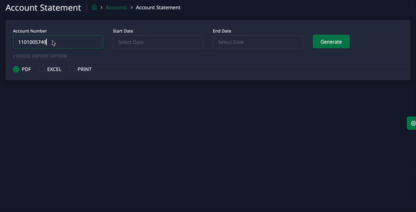 The Account Statement feature enables you to generate a customer's account statement. This guide will walk you through developing an account statement within the Udara360 core banking system.