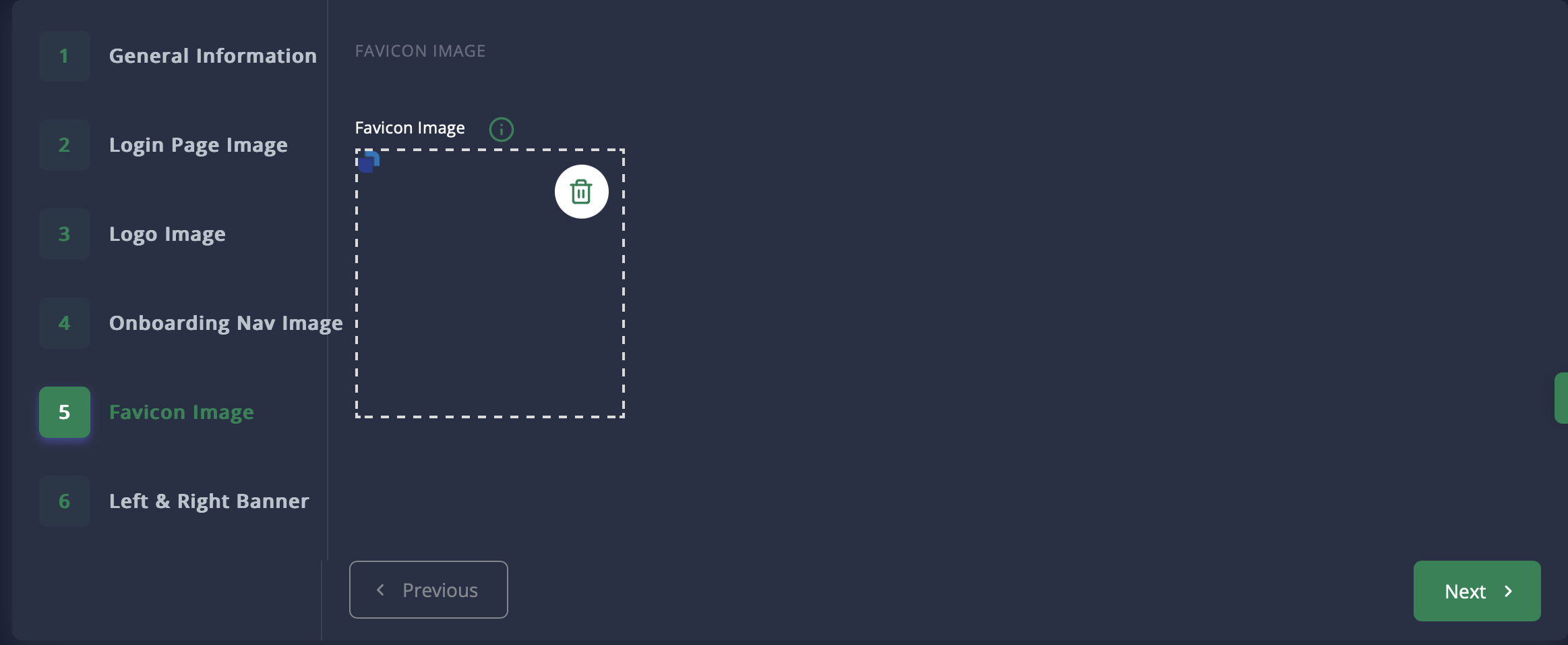This section allows you to set the favicon, a small icon displayed on browser tabs, which makes it easy to identify the platform among multiple open tabs.