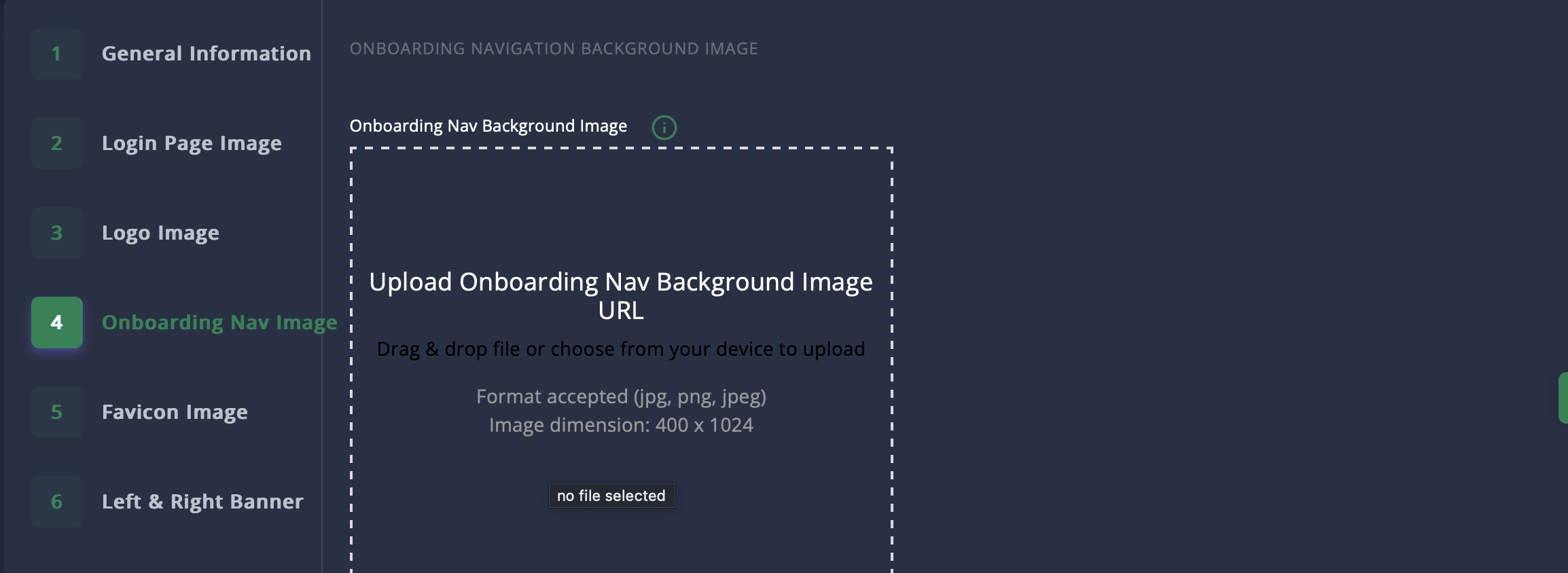 In this section, you can set an image for the onboarding navigation page. This image helps create a consistent visual experience for users during the onboarding process.