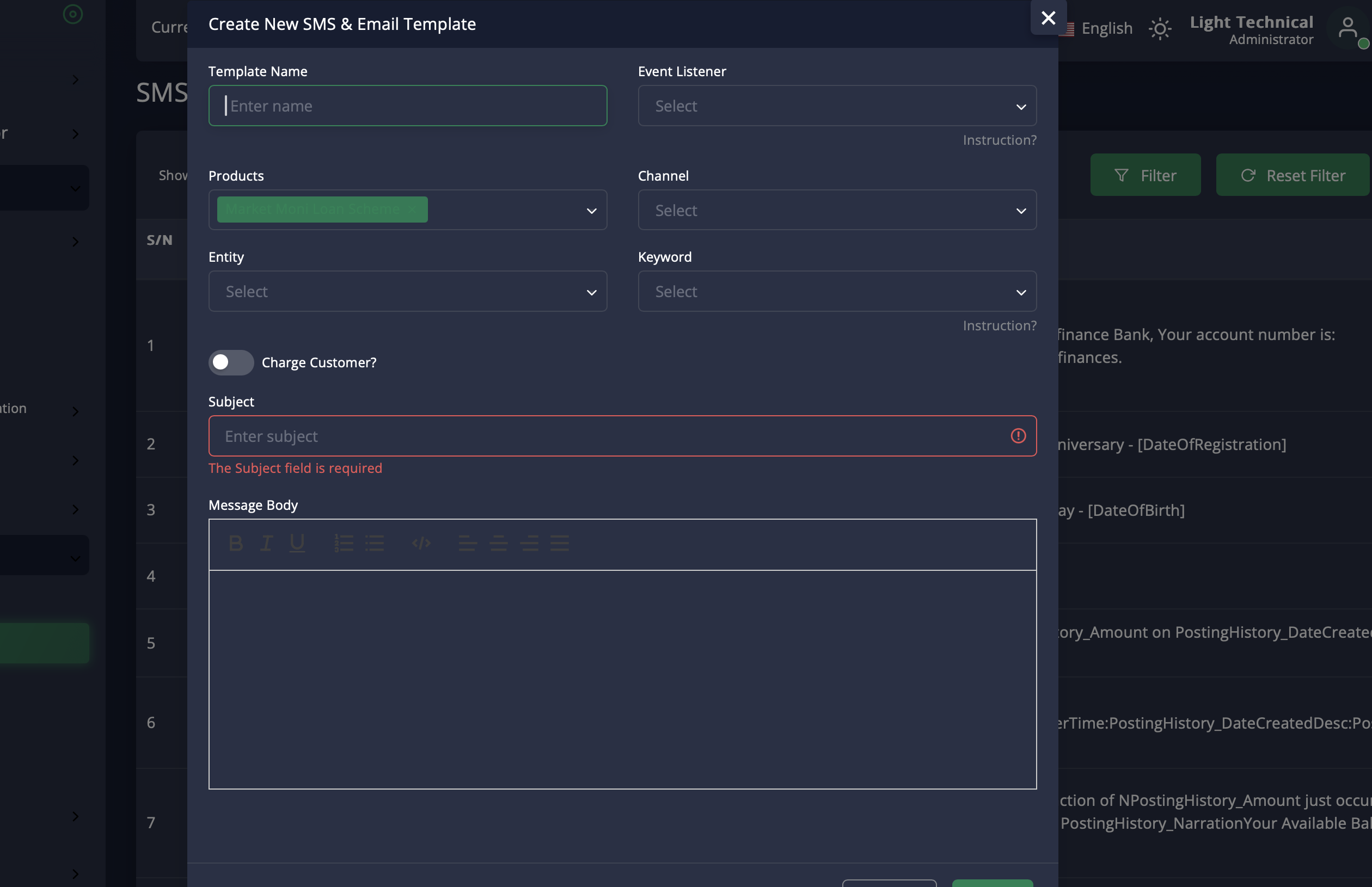 3. **Event Listener:** Select the specific event that will trigger the notification. This could be an account opening, loan approval, transaction alert, or any other relevant event.